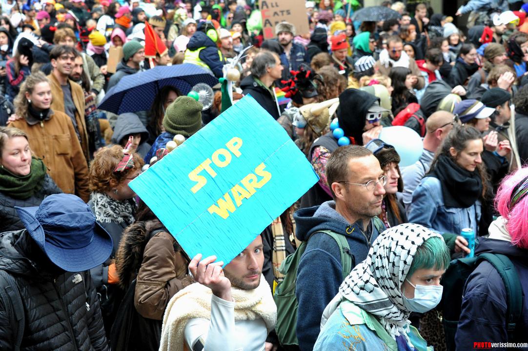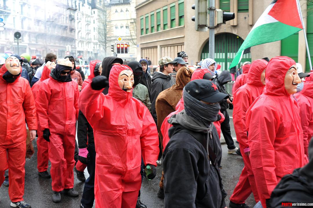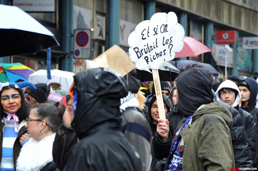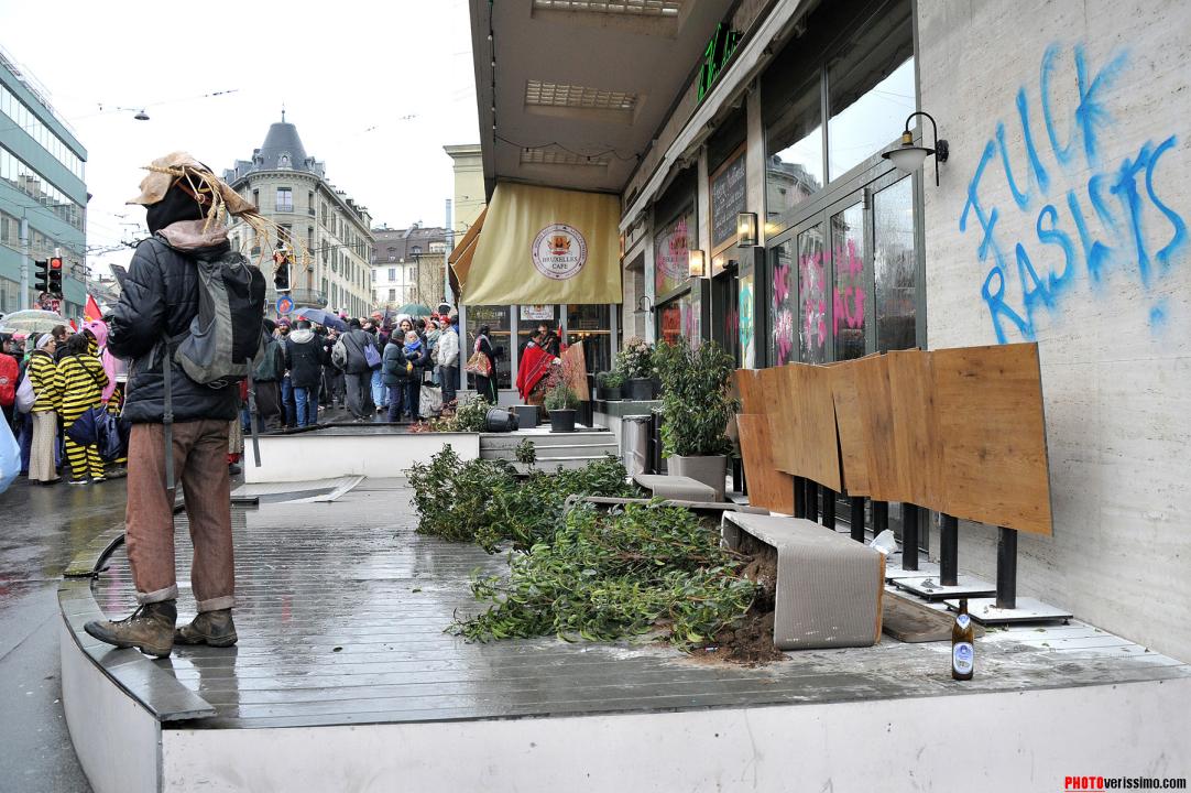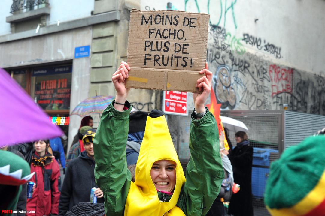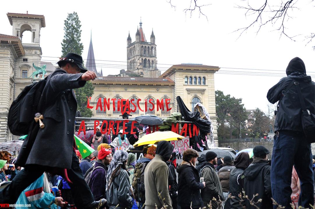 Près de six mille personnes déguisées pour la majorité, ont participé à la manifestation anti-fasciste qui s’est déroulée dans les rues de Lausanne samedi dernier. Selon les organisateurs, ce rendez-vous déjà organisé l’année dernière, vise à occuper l’espace public et à fédérer contre la montée de l’extrême droite. La terrasse du restaurant «Le Vaudois» a été vandalisée et quelques murs et vitrines ont été tagués le long des rues. Ambiance en images.