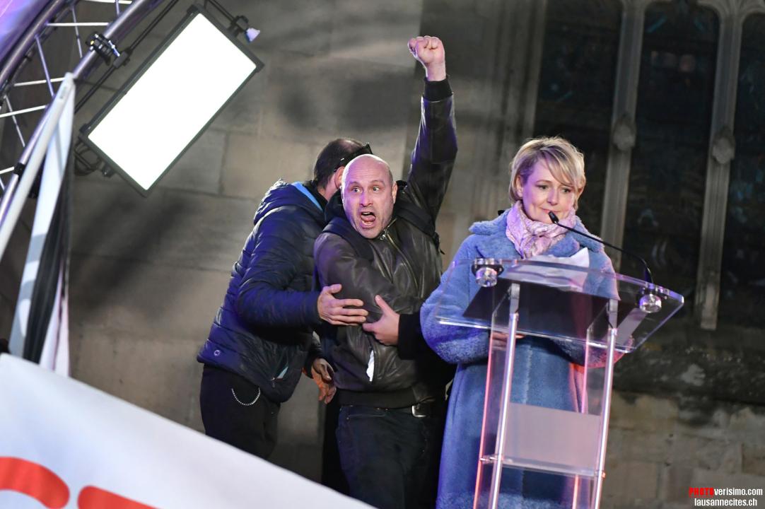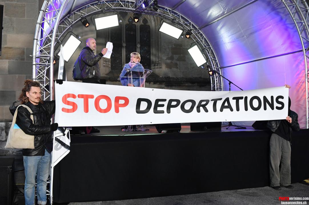 Samedi dernier, lors de l’inauguration officielle de la nouvelle illumination de la cathédrale de Lausanne, la conseillère d’État Isabelle Moret, en charge de l’Etablissement Vaudois de l’Accueil des Migrants (EVAM), a échappé à la «douche de farine», mais s’est retrouvée privée de micro pendant quelques minutes lors de son allocution. En effet, des membres du collectif Droit de rester sont venus lire un manifeste contre «La politique inhumaine et xénophobe de madame la ministre».