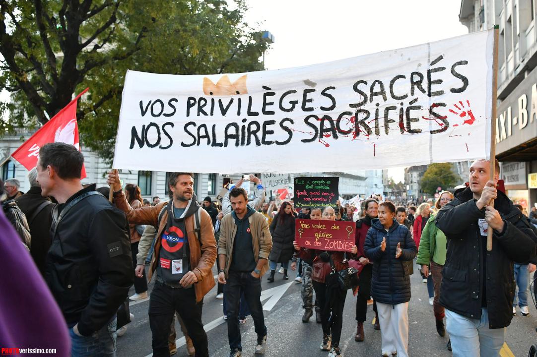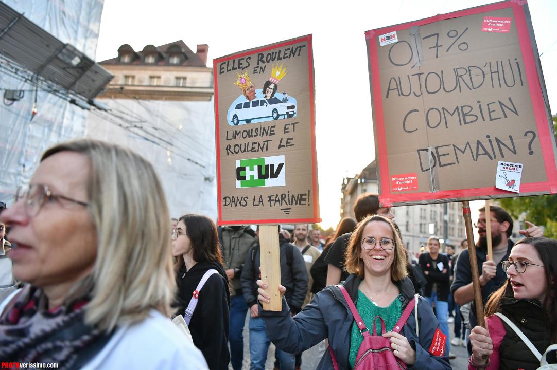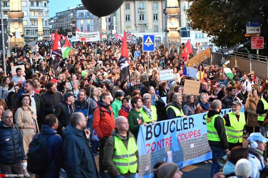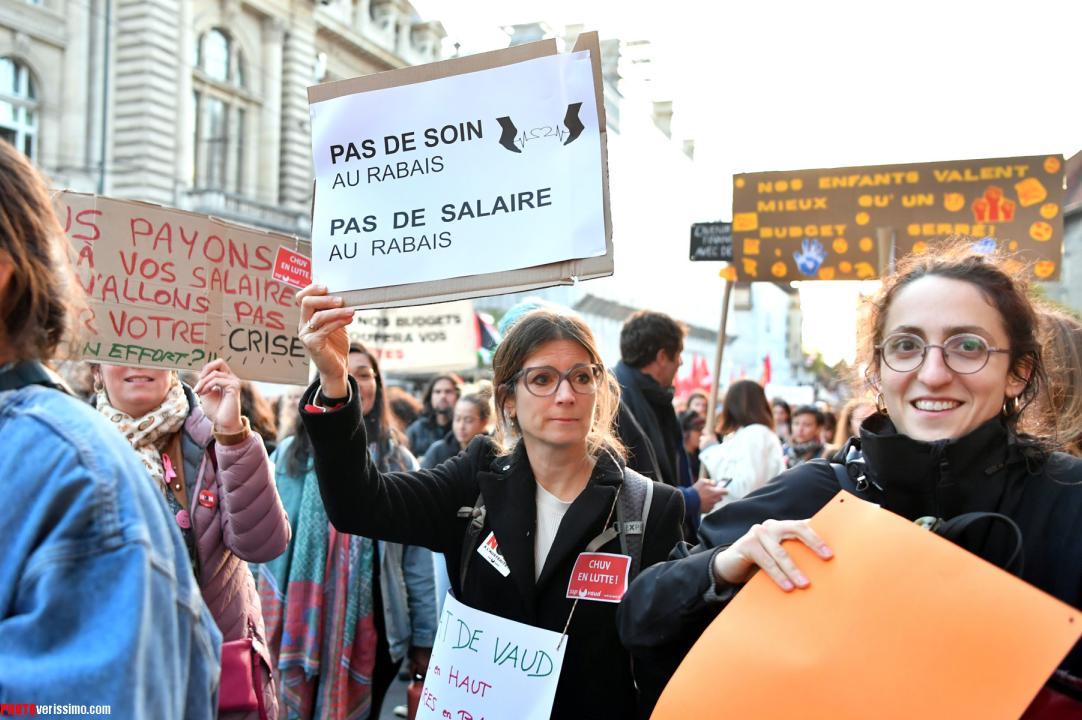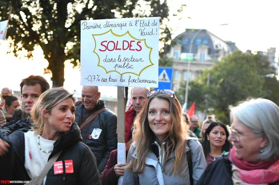 Jeudi dernier, les syndicats et les travailleurs de la fonction publique et parapublique ont manifesté leur mécontentement envers les coupes budgétaires annoncées par le Conseil d’État et prévues pour l’année prochaine. Dans ce contexte, ils étaient plus de dix mille dans les rues de Lausanne à exprimer leur colère. Ambiance en images. © Valdemar VERISSIMO