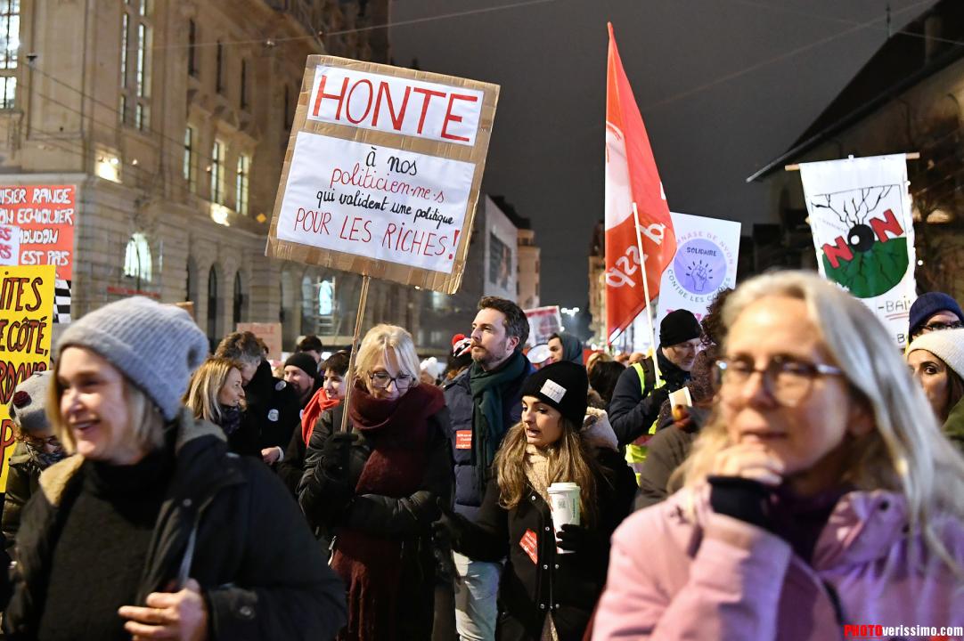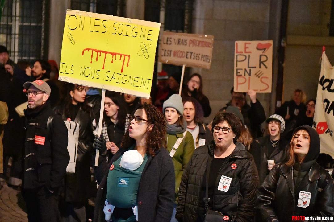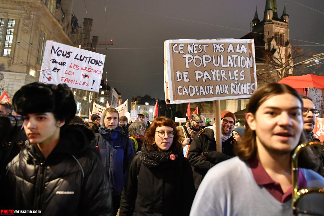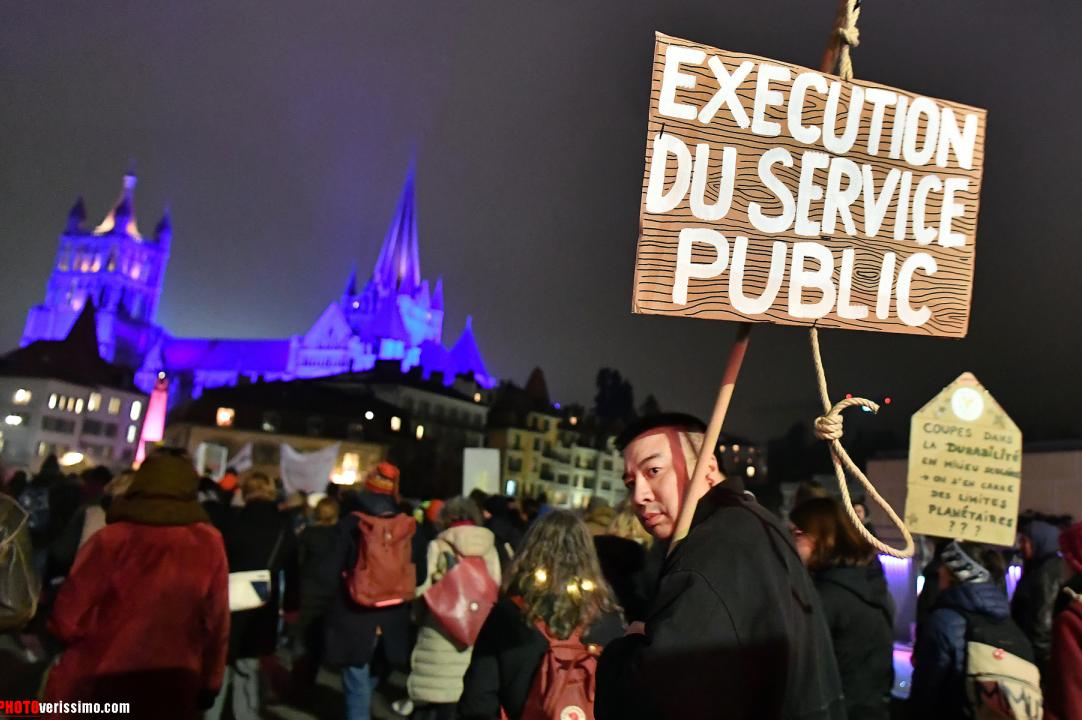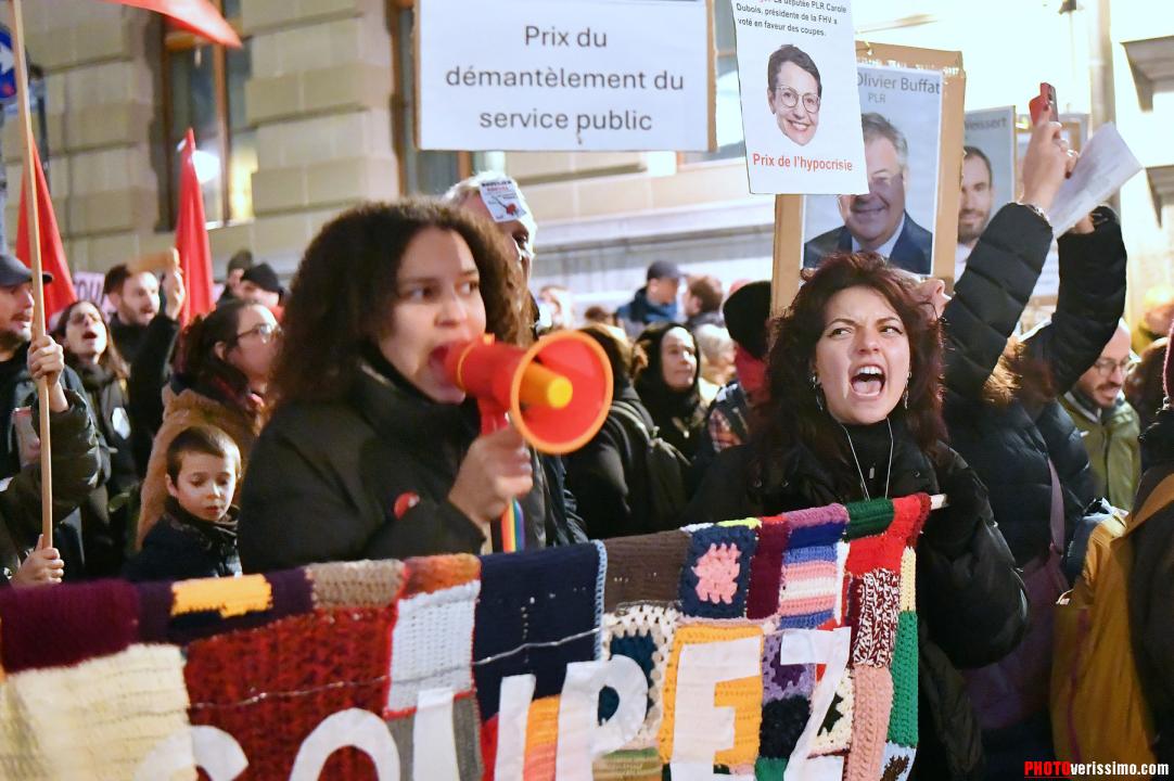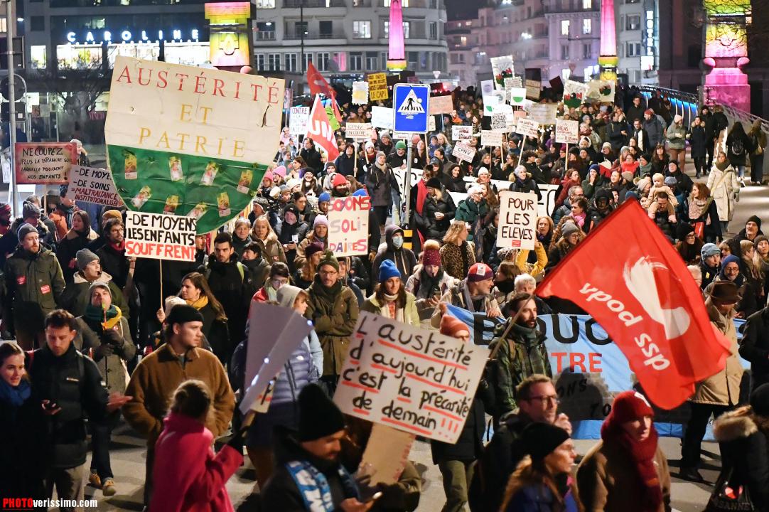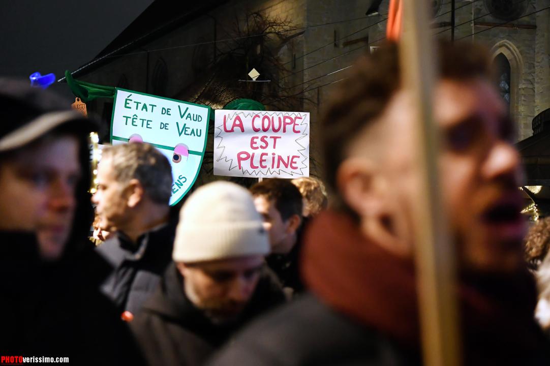 Après les longs débats de la semaine dernière concernant les coupes budgétaires, marqués par plusieurs jours de grève et de cortèges dans les rues de Lausanne, le Grand Conseil a finalement approuvé le budget de l’année prochaine. Mécontents, les syndicats sont donc déterminés à poursuivre la mobilisation. Dans ce contexte, une assemblée générale est d’ors et déjà prévue le 6 janvier prochain afin de déterminer la suite du mouvement. Retour en images lors de la dernière grande manifestation et de l’action devant le parlement vaudois.